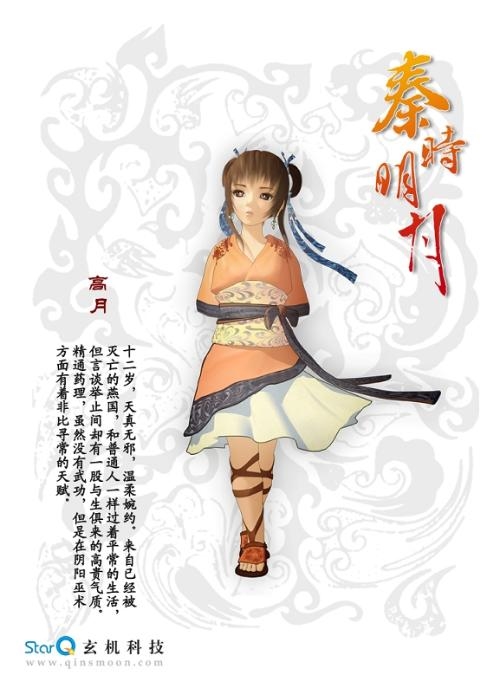 燕太子丹之女,原是燕国公主,封号“高月”。天真无邪,温柔婉约,在燕国灭亡后和普通百姓一样过着平常生活,但言谈举止间却仍有一股与生俱来的高贵气质。